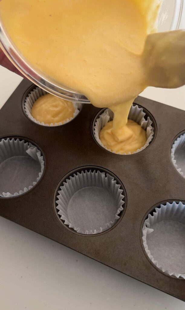 8.Divide the dough into 6 equal parts and pour it into a muffin mold with a glassin case.