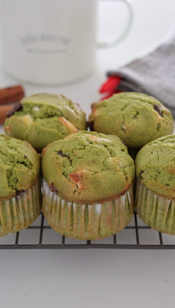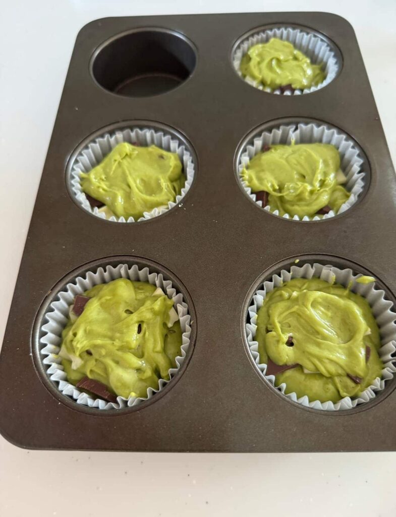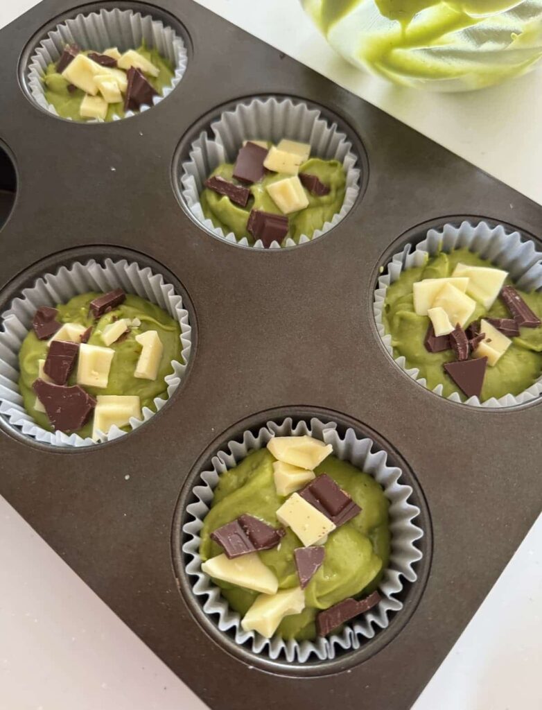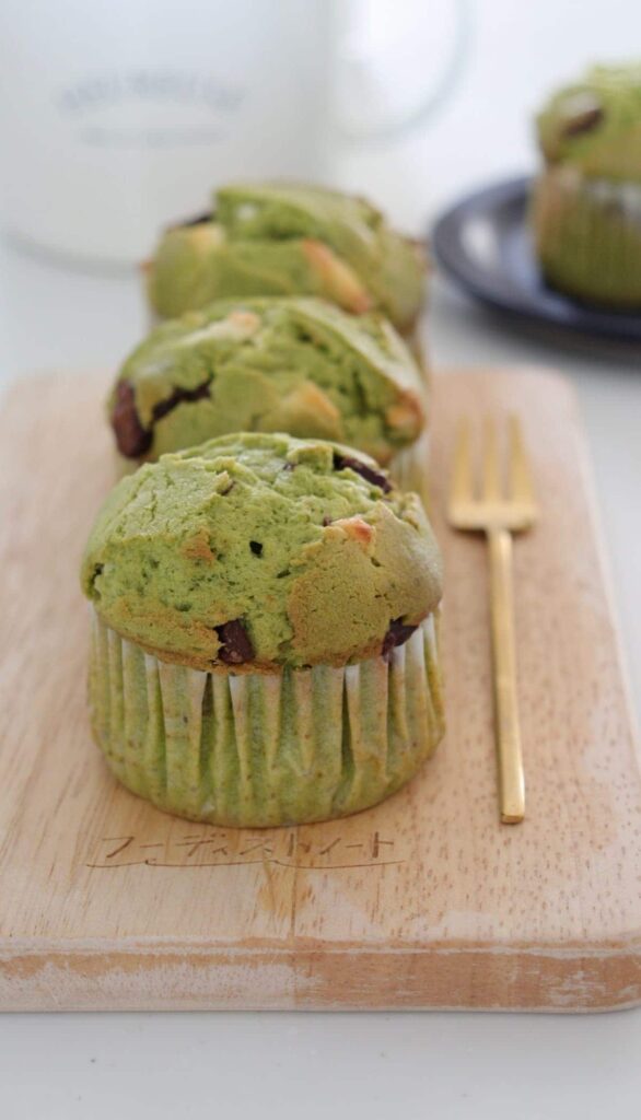 抹茶マフィンに板チョコを割って入れて焼きました♡