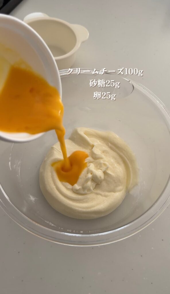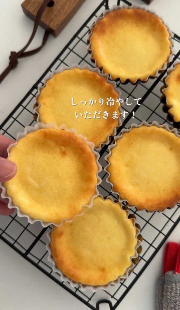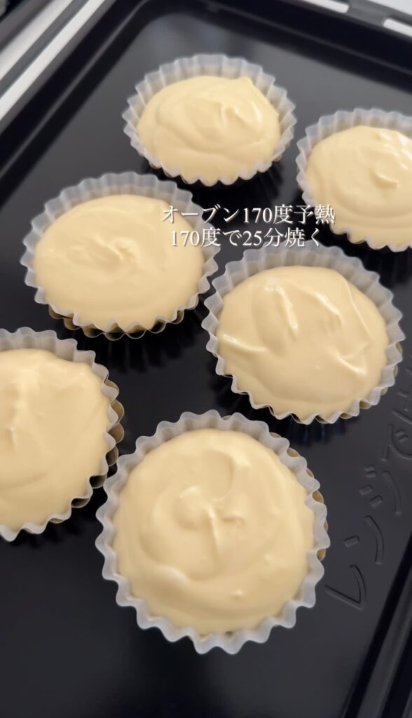 以前のおひとり様ベイクドチーズケーキの改良版レシピ。ひとつあたりのボリュームが出るように作ってみました!