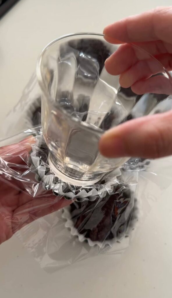 コップの底などを使ってオレオを平らに押し固めます。