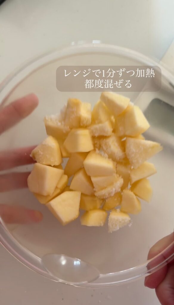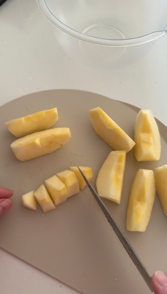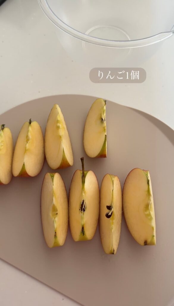 りんごは8等分して、さらに4つか5つくらいにカットしました。