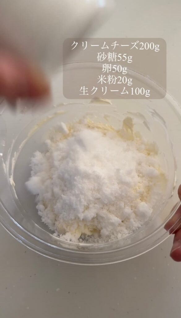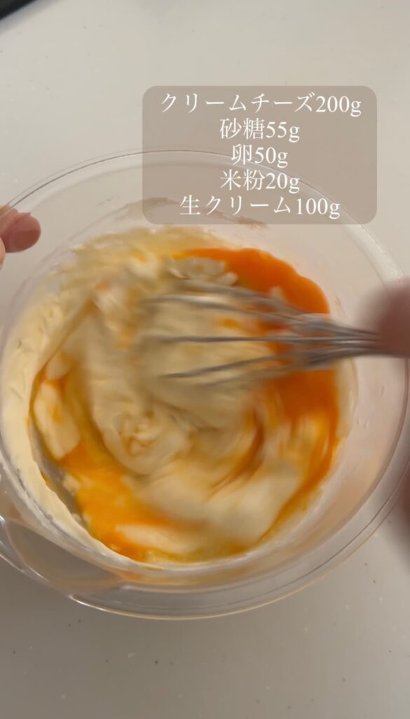 ⑦やわらかくしたクリームチーズに砂糖を加え、ホイッパーで混ぜ合わせる。