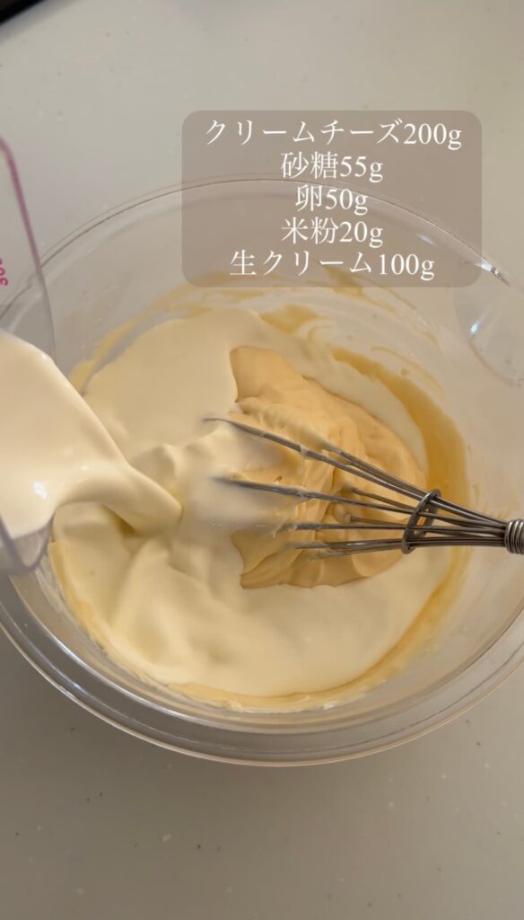 ⑩生クリームを加え、ホイッパーで混ぜ合わせる。