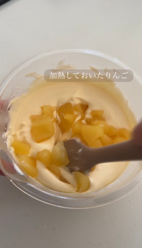 ⑪⑤のりんご煮を加え、ゴムベラで混ぜ合わせる。