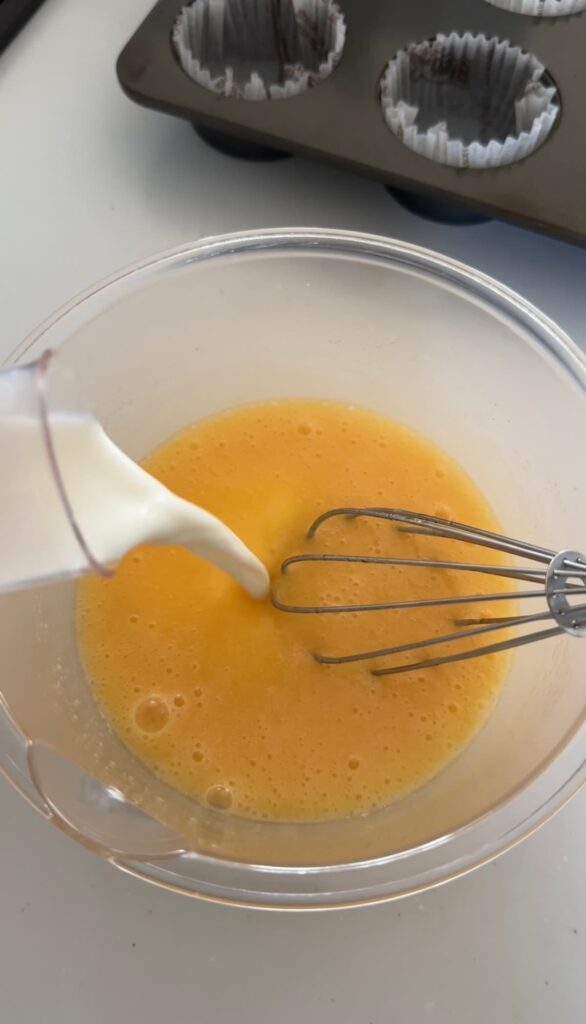 ⑤常温に出しておいた牛乳を加え、ホイッパーでよく混ぜる。